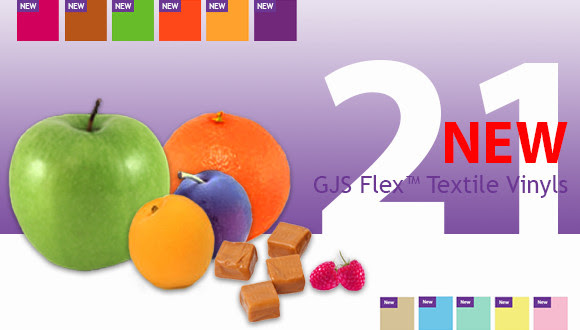 The GJS Flex product range, for t-shirt and garment manufacturers, now includes a palette of soft pastel colours! Available in pink, yellow, green, blue, skin, lilac and light gold and ready to order now. For more vibrant graphics, the range now includes tasty new additions such as raspberry, caramel, tangerine, plum, apricot and apple green vinyl....just to name a few!