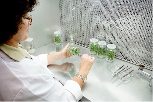 Amanda Rollason, Botanic Gardens of Sydney's Technical Officer, prepares plant specimens for storage in sterile tissue culture at the Australian PlantBank, an alternative to traditional seed banking. Picture credit: Botanic Gardens of Sydney.