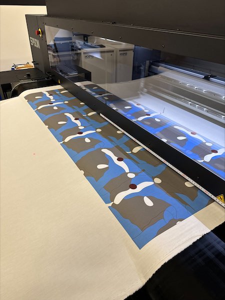 Designs by Ngali Owner and Designer, Denni Francisco being printed out on an Epson Monna Lisa digital direct-to-fabric printer